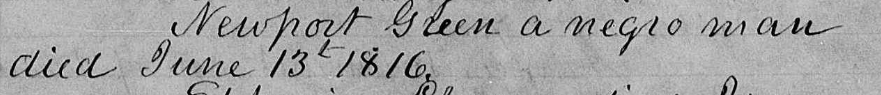 It is not known how long Newport was enslaved by Hartshorn. It is reported that Hartshorn was an abusive master. So much so that several concerned citizens pooled their money and bought Newport’s freedom and posted a bond to the town of Medfield should Newport become a charge on the town’s poor rolls. Newport most certainly was free when he enlisted in the militia in July of 1778, where he served a two-month term in Capt. Amos Ellis’ Company. It is said he took the surname Green at this time, in honor of his friend Warwick Green. Newport’s relationship with Warwick adds another level of confusion to documenting Newport’s life. In a 1897 paper presented to the Medfield Historical Society by William Tilden, a Medfield Historian, noted that both Newport and Warwick “were attached to the same wealthy family,” presumably to John Greene. Warwick is definitely attached to John Greene as he served in the Revolutionary War for John Greene, which also appears to be how Warwick received his freedom. There are indeed similarities between Newport and Warwick which could possibly give credence to the notion they both belonged to John Greene; both were nailors, both were named after towns in Rhode Island, both carried the surname “Green,” and they most certainly seem to have known each other. However, John Greene’s time line does not fit with Newport’s timeline, as Greene came to Medfield around 1770 and Newport had already been there for approximately eight years.